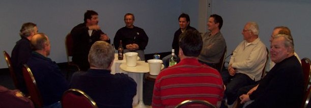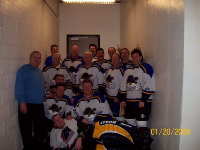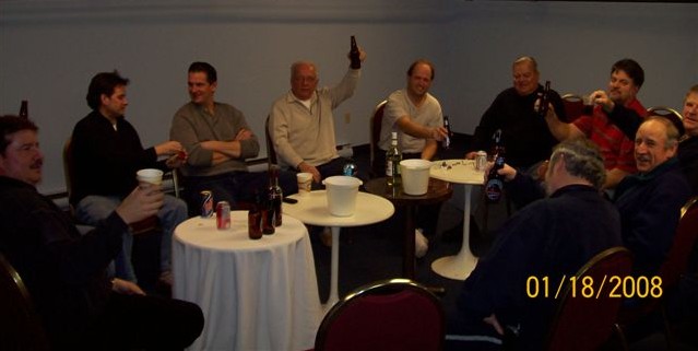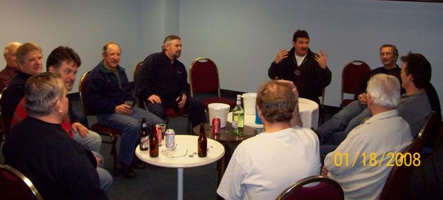 The 2008 Fredericton Classic, Keith's Division Champs Moncton Slowpokes Georges explaining game strategy, first night in Fredericton 2 hours later, Georges still explaining the game plan Meeting adjourned !